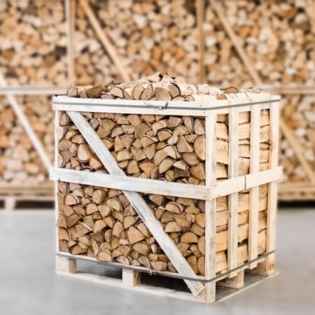 Halbe Palette kammergetrocknetes gespalten Birke Brennholz 25cm